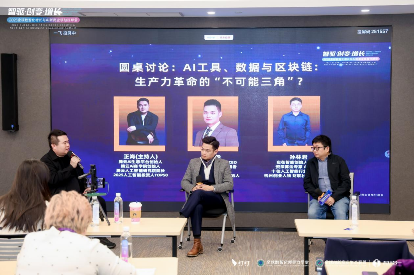 围绕“AI工具、数据与区块链”、“组织进化论”及“跨境数智化”展开。嘉宾共识:三项技术互补构建可信数字生态;转型是“人机协同”,需重塑岗位与能力;AI已成全球产业“连接器”,推动资源高效配置。